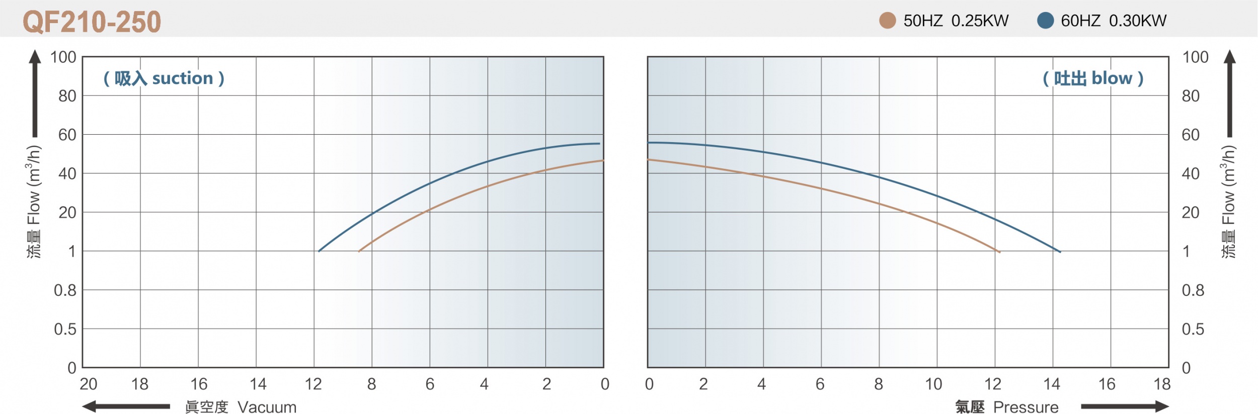 QF系列漩涡气泵性能曲线(仅供参考不作检测依据)