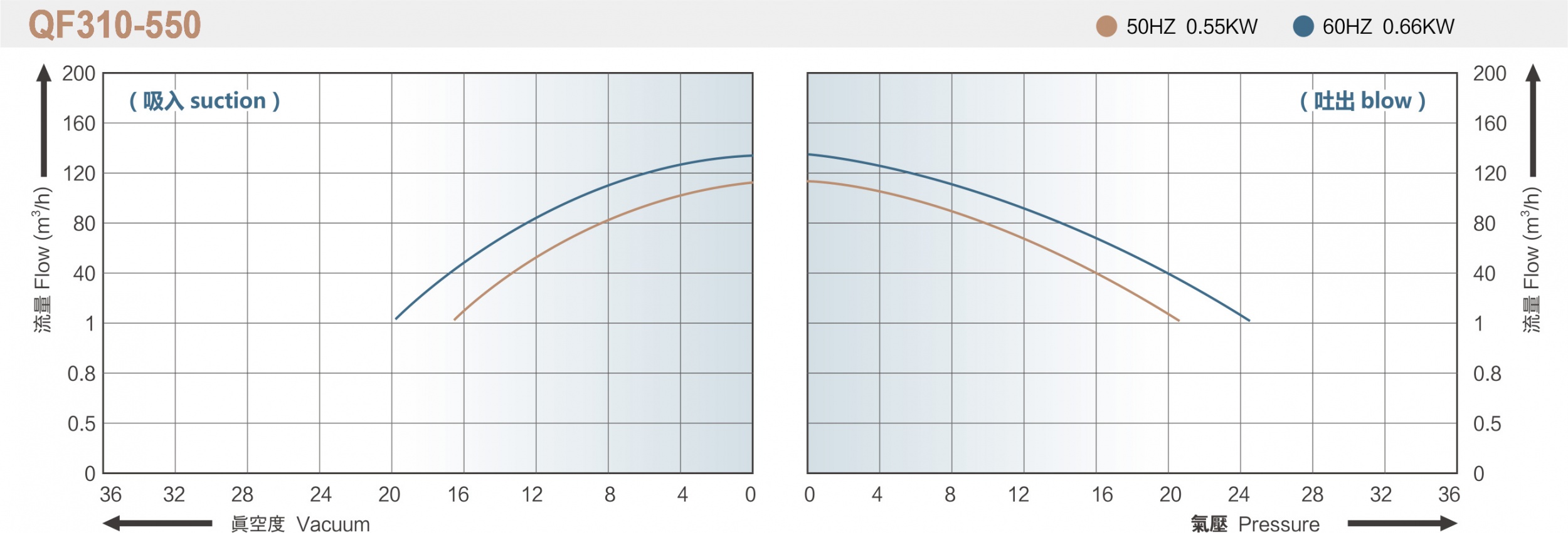 QF系列漩涡气泵性能曲线(仅供参考不作检测依据)