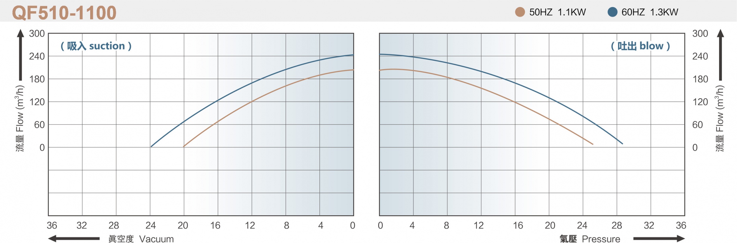 QF系列旋涡气泵性能曲线(仅供参考不作检测依据)