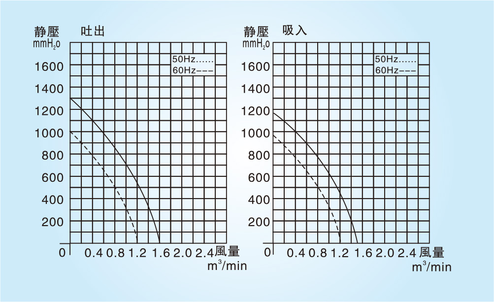 RB系列环形鼓风机性能曲线(仅作参考不作检测依据)