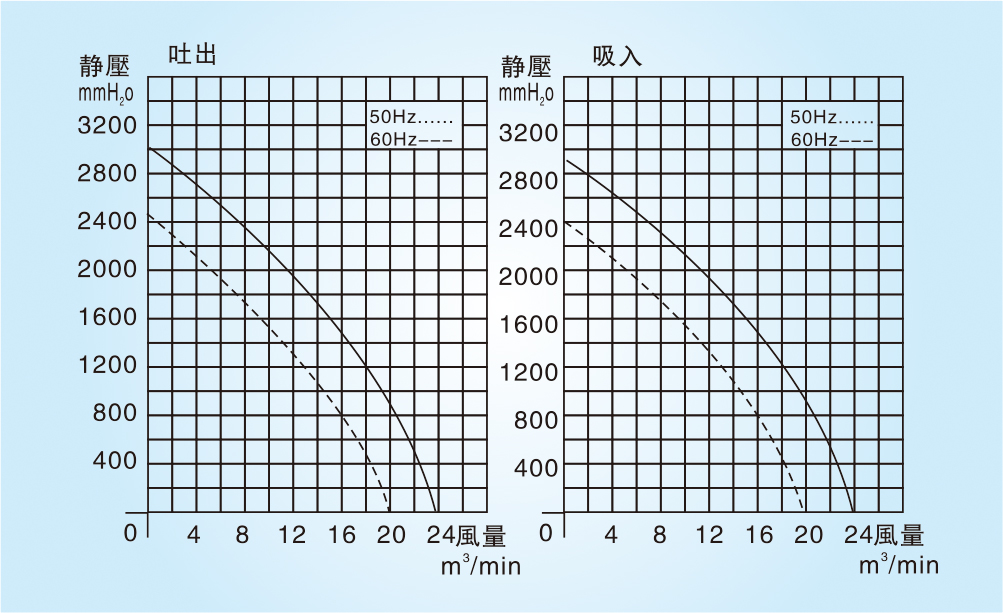 RB系列环形鼓风机性能曲线(仅作参考不作检测依据)