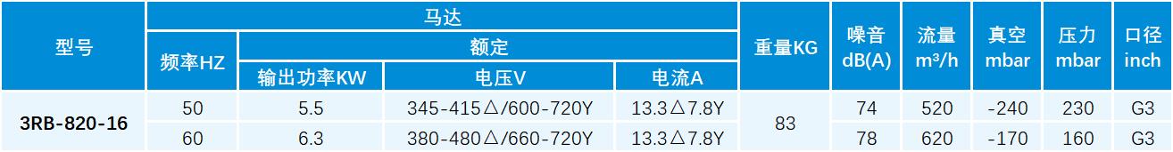 双段双叶侧风道鼓风机6.3KW3RB-820-16,无油或少油运转,输出的空气是干净的。
