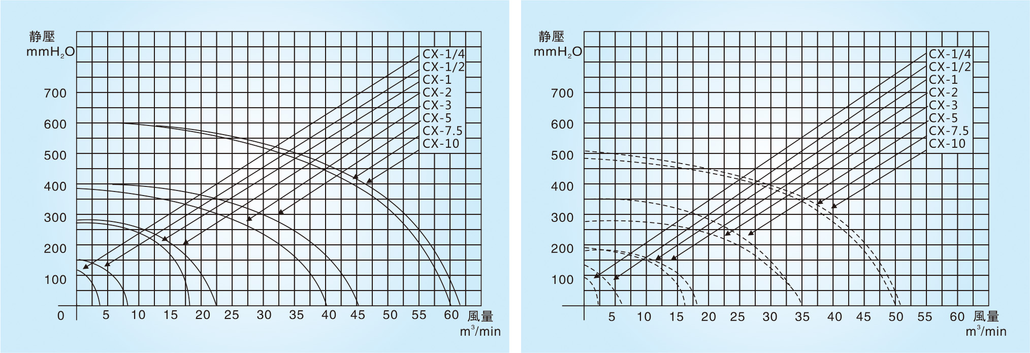 CX系列透浦式鼓风机性能曲线(仅作参考不作检测依据)