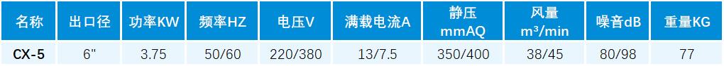 透浦式鼓风机CX-5,适用于吸料送料,畜牧养殖,工业炉除尘助燃,塑料机械配套设备,激光机排烟等。