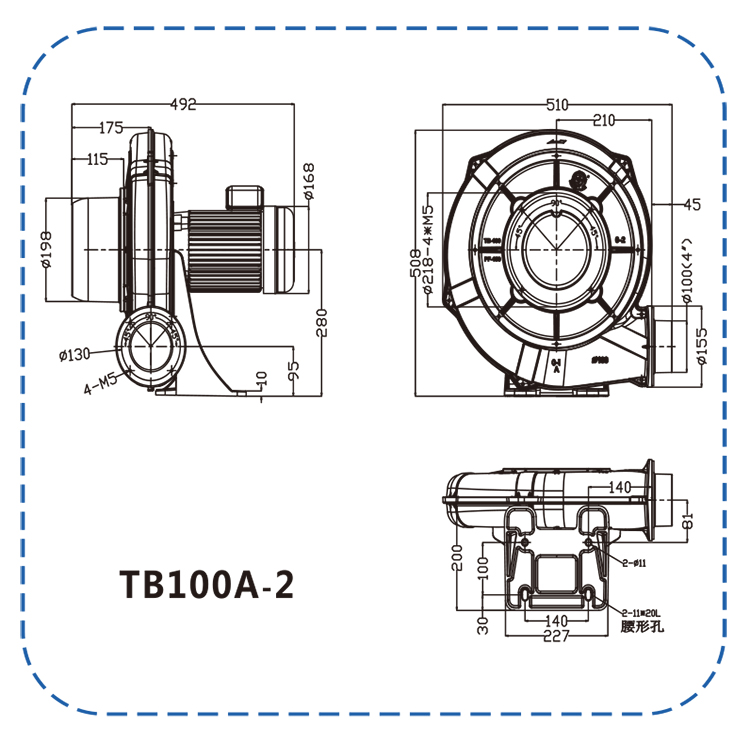 TB系列透浦式鼓风机采用全新模具、铸铝外壳,引进先进装配线及检测工具,严格把关,高可靠性,低维护,长寿命。