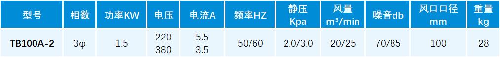 TB系列透浦式鼓风机性能参数: