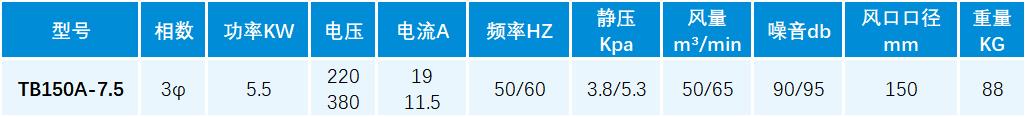 TB系列透浦式鼓风机性能参数: