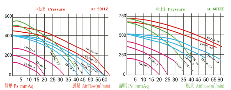TB系列中压透浦式鼓风机性能曲线(仅供参考不作检测依据)