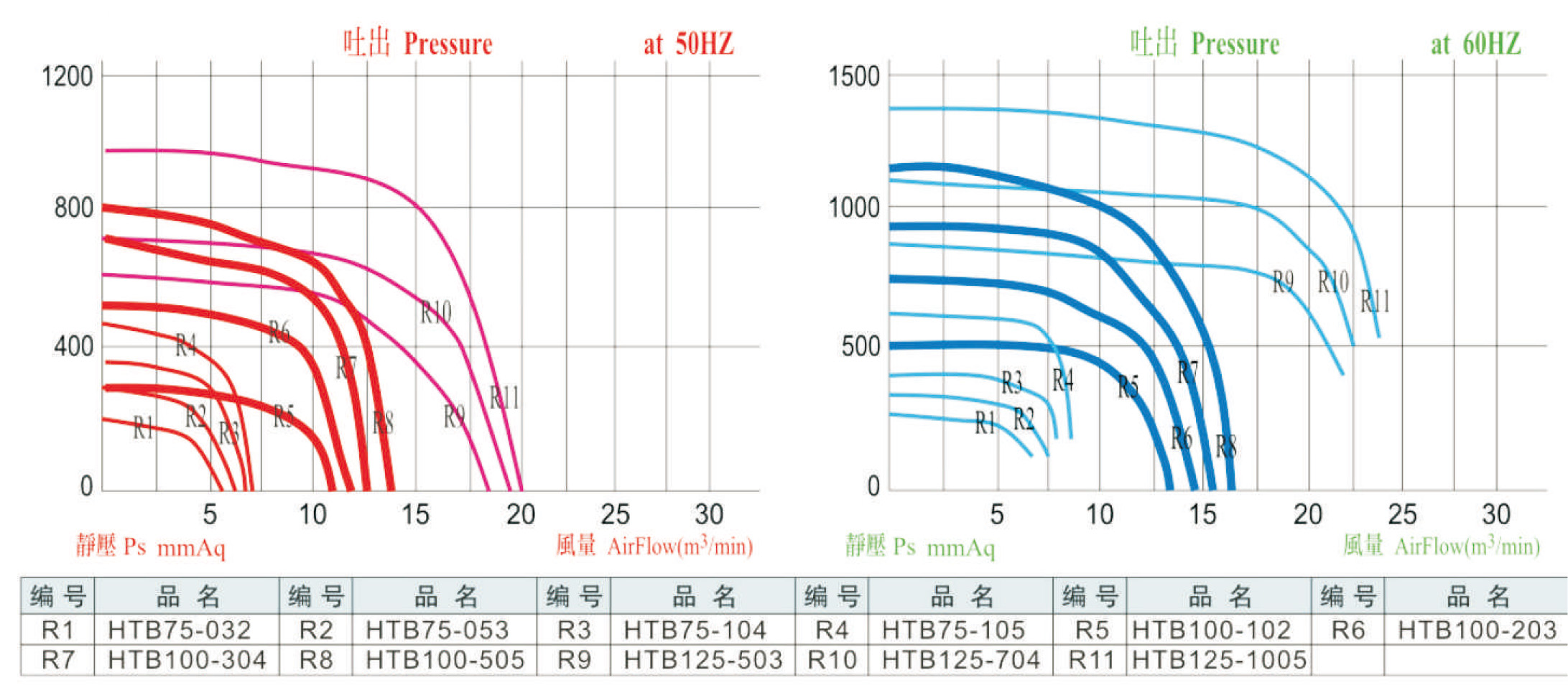 HTB系列中压透浦多段式鼓风机性能曲线(仅作参考不作检测依据)