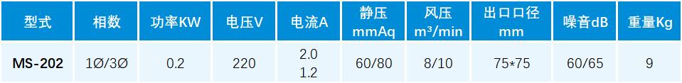 MS-202多翼式鼓风机,适用于炉灶,塑料,印刷行业送风,冷却,吹干,一般机械排风。