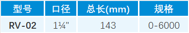2、释压阀的规格分为RV-01、RV-02。